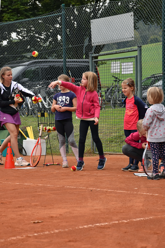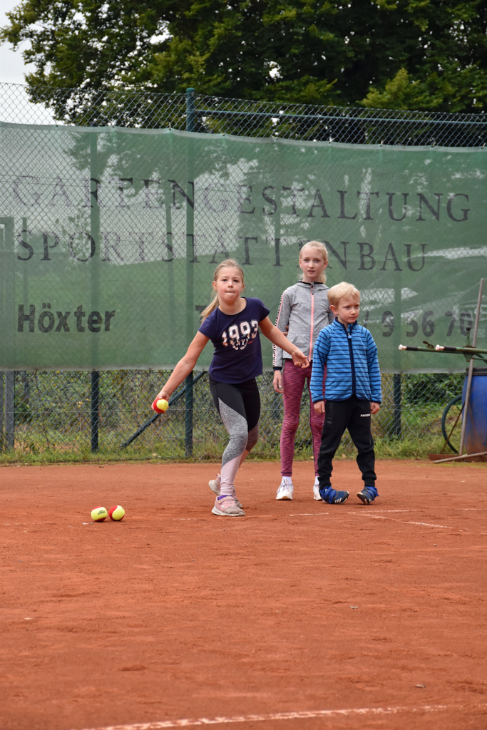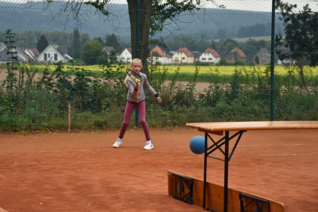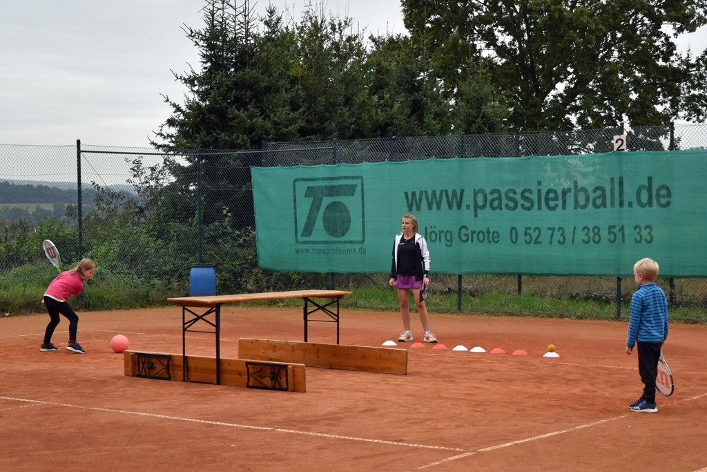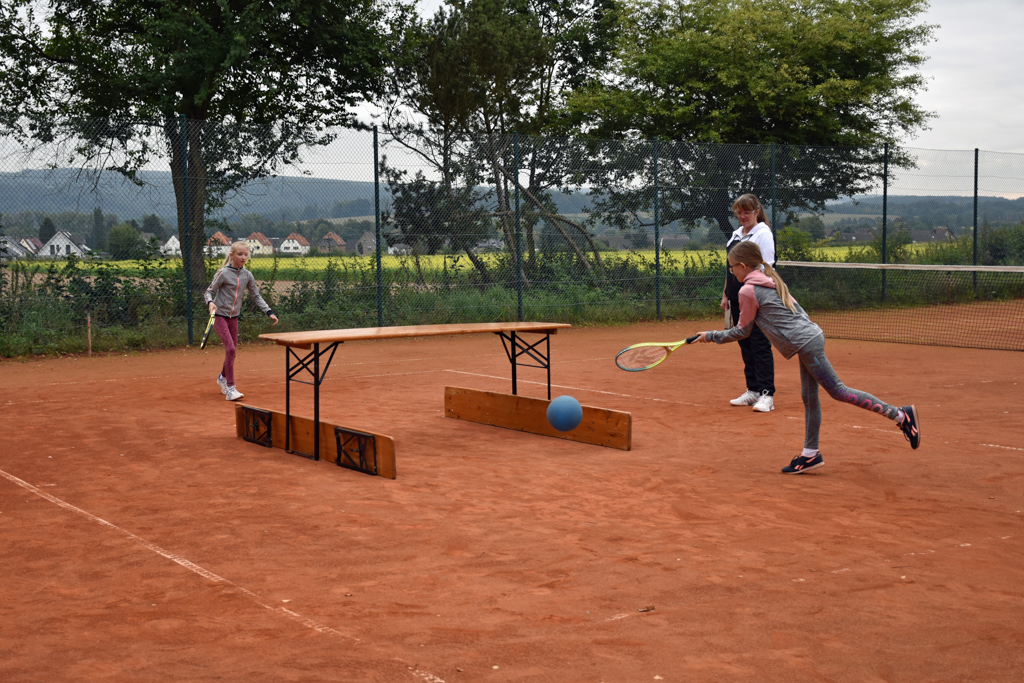 Der Tennisclub Godelheim 78 e.V. hat zum Abschluss des diesjährig wieder neu aufgenommenen Kinder- und Jugendtrainings ein Rolltennis-Turnier mit Talentiade für die jungen Neumitglieder veranstaltet. Dabei haben die Kinder nicht nur im Spiel zu zweit um Punkte gekämpft sondern auch, wie bei einem Sportabzeichen, verschiedene Motorik- aber auch tennisspezifische Übungen absolviert. Die Kleinsten konnten ihren Fähigkeiten beim Weitwurf, Prellen, Geschicklichkeitsparcours, Zielwerfen, Balancieren aber auch Vorhand- und Rückhand-Schlag unter Beweis stellen. Für die Großen ging es ebenfalls bei Weitwurf sowie beim Jonglieren, Fangen, Aufschlagen, Partnertennis und im Spiel mit dem Trainer um Bronze, Silber und Gold.