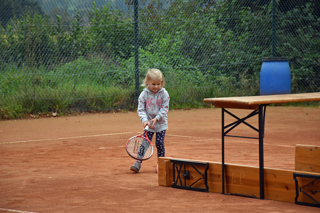 Natürlich kamen auch die Älteren noch zum Zuge. So wurde der Saisonabschluss mit einem Schleifchen-Mixed-Turnier bei Kuchen, Gegrilltem, heißen und kalten Getränken zu einer gelungen Abschlussfest der Tennis-Außensaison.