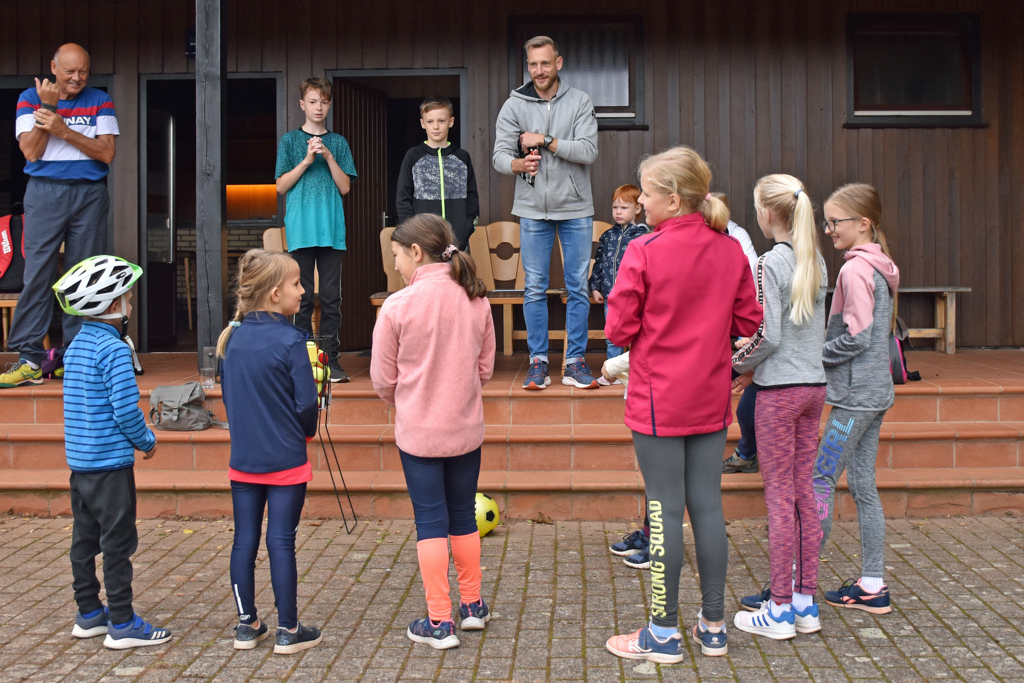 Auf dem ersten Bild: Vereinstrainer Jens Hoeptner (rechts) mit seinen „Talentinos“ und Helfern.