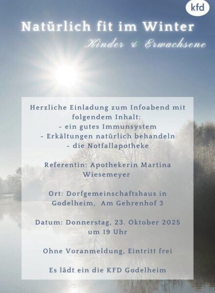 Die kfd lädt am 23.10.25 um 19 Uhr zum einem Infoabend zum Thema „Natürlich fit im Winter“ ein.