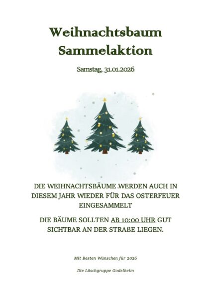 Am 31.01.2026 werden ab 10 Uhr von der Löschgruppe die Weihnachtsbäume für das Osterfeuer abgeholt.